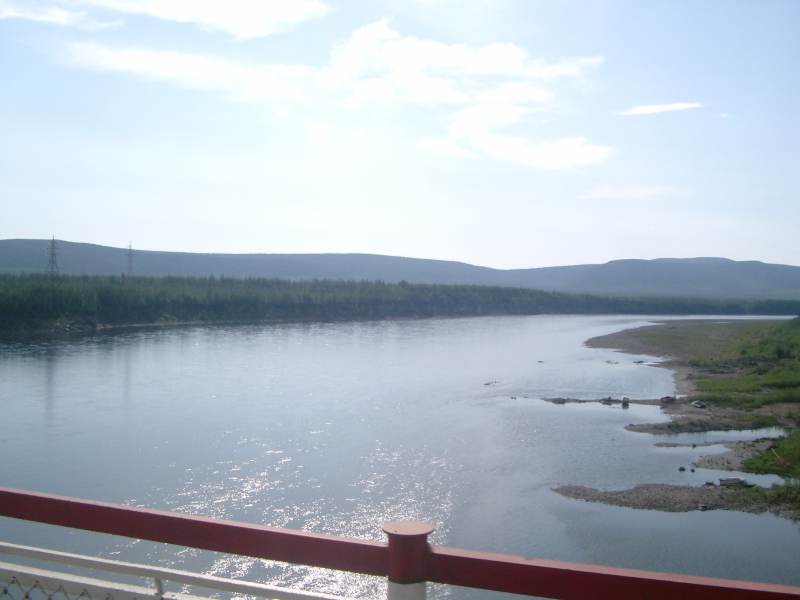 bis ans Ufer. Ab und zu sehen wir einige Häuser und sogar Autos. Den Abzweig in den Aldan