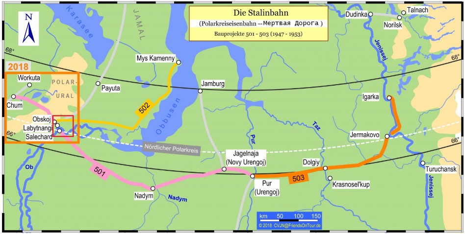 Zur Erschließung dieser Bodenschätze und aus geostrategischen Gründen ließ Stalin zwischen 1947 und 1953 im Rahmen von GULag-Arbeitslagern die Eisenbahn-Bauprojekte 501 bis 503 realisieren (mehr dazu in "Stalinbahn - Ein historischer Überblick").